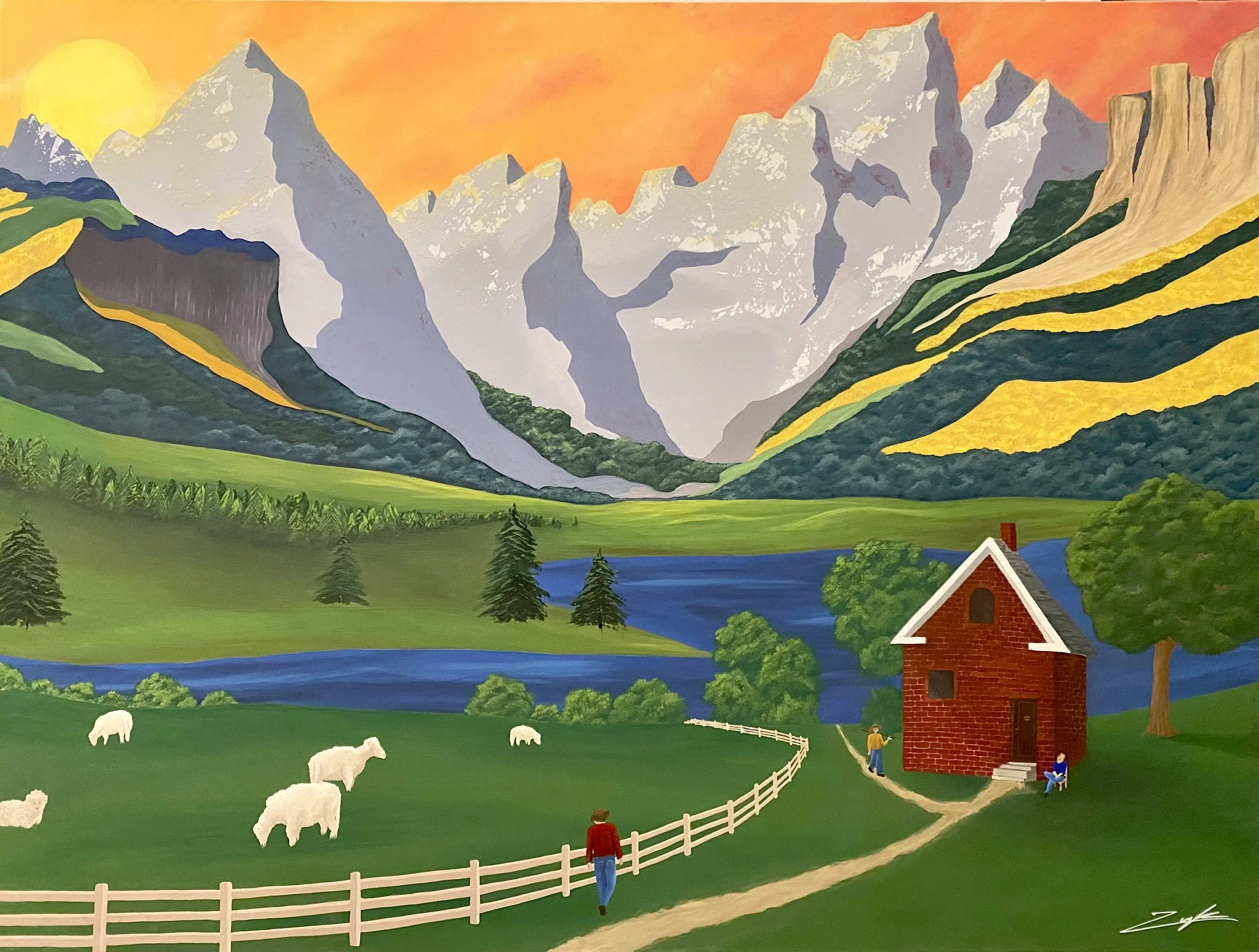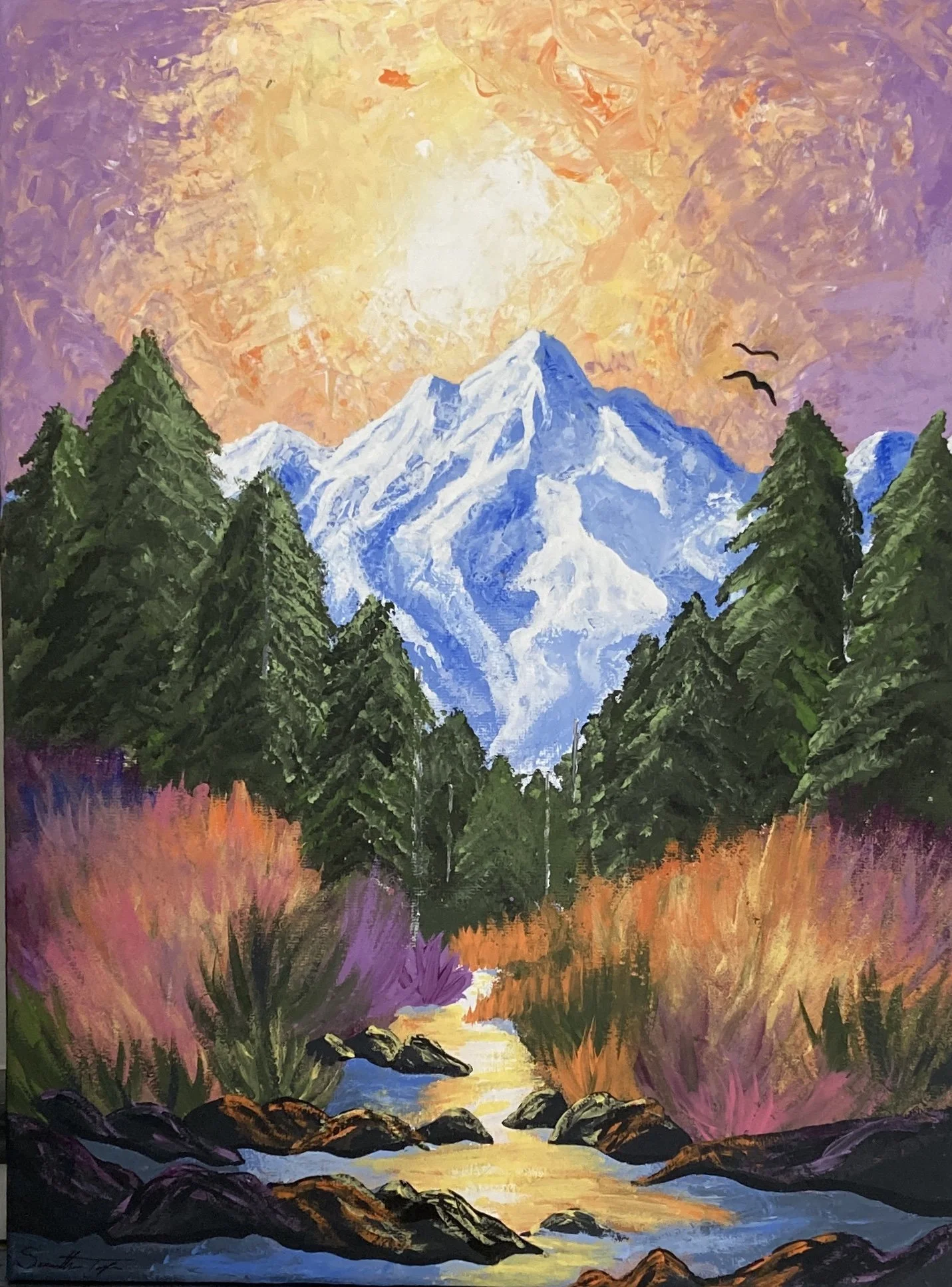 I began painting landscape and noticed the scribbles had not only disappeared but took my head with it.